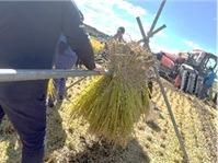 どではら会の生産者さんから今年の稲作、夏の酷暑対策・雨等大変だったことの報告、収穫の手順説明があり、いざ開始。我々家族は昨年に続き二度目でしたが、大人も子どももワクワクドキドキ、鎌で稲を刈り、藁で束ねて、干していく作業。単純と思いきや、なかなか体力勝負の作業でした。全員の力を合わせて頑張った成果をながめては、ホッとしました。つきっきりで作業の見本を見せてくださったどではら会の方々ありがとうございました。残りは、コンバインの出番。写真撮影の後は、アグリセンター黒磯に移動しての、待ちに待った昼食会と、どではら会の方たちとの談話等、和気あいあいの懇親会となりました。新米のおいしさと具だくさんの豚汁の温かい昼食のおもてなし。那須山麓米使用の新米のおにぎりは、稲刈りの後で味わいも格別でした。(W.H)